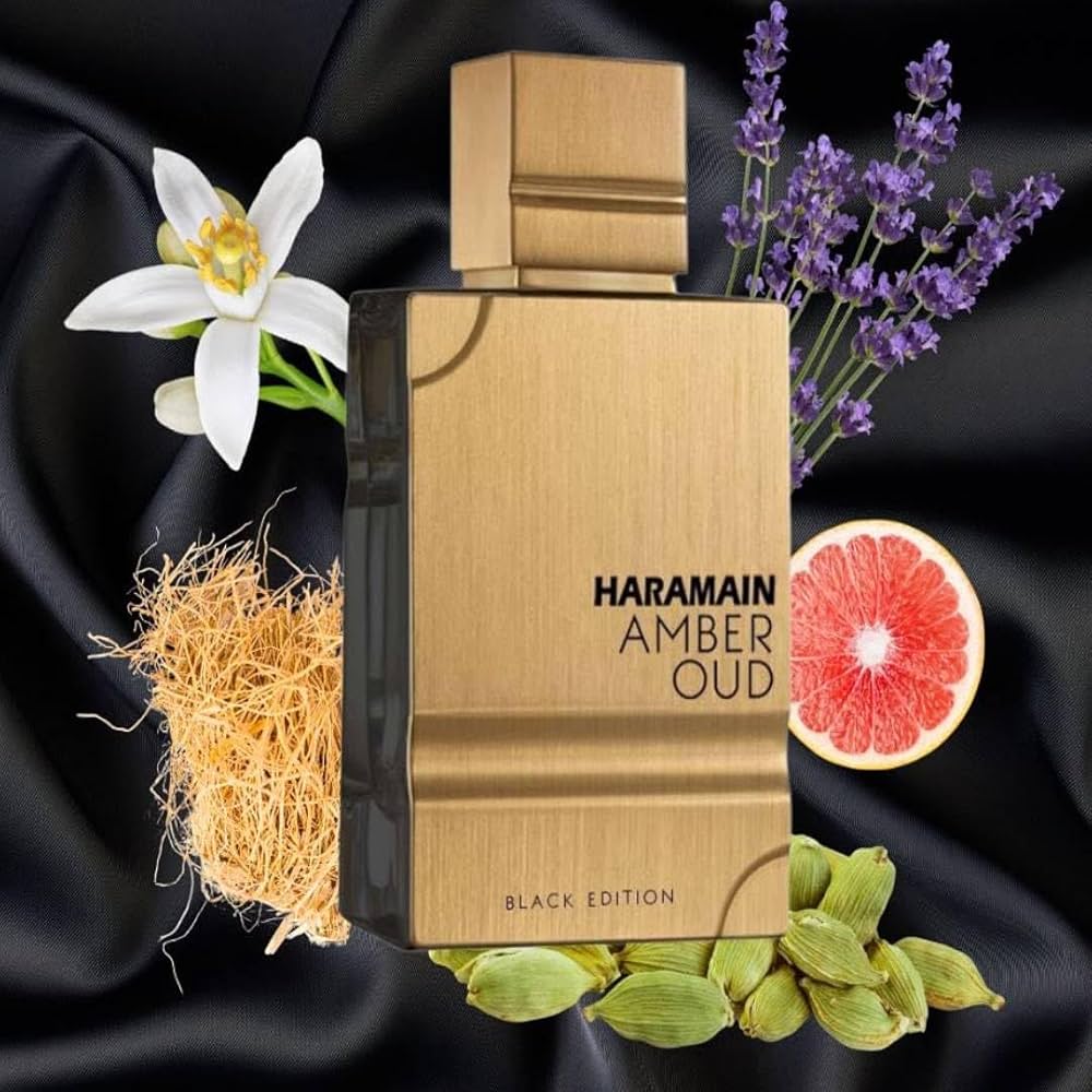 Al Haramain Amber Oud Black Edition es una fragancia unisex, audaz y elegante, que combina cuero ahumado, ámbar cálido y hierbas especiadas en un aroma rico y refinado. Su lujosa salida de cardamomo y pomelo da paso a un corazón profundo y sensual de cuero y haba tonka, con un final de ámbar suave y vetiver.