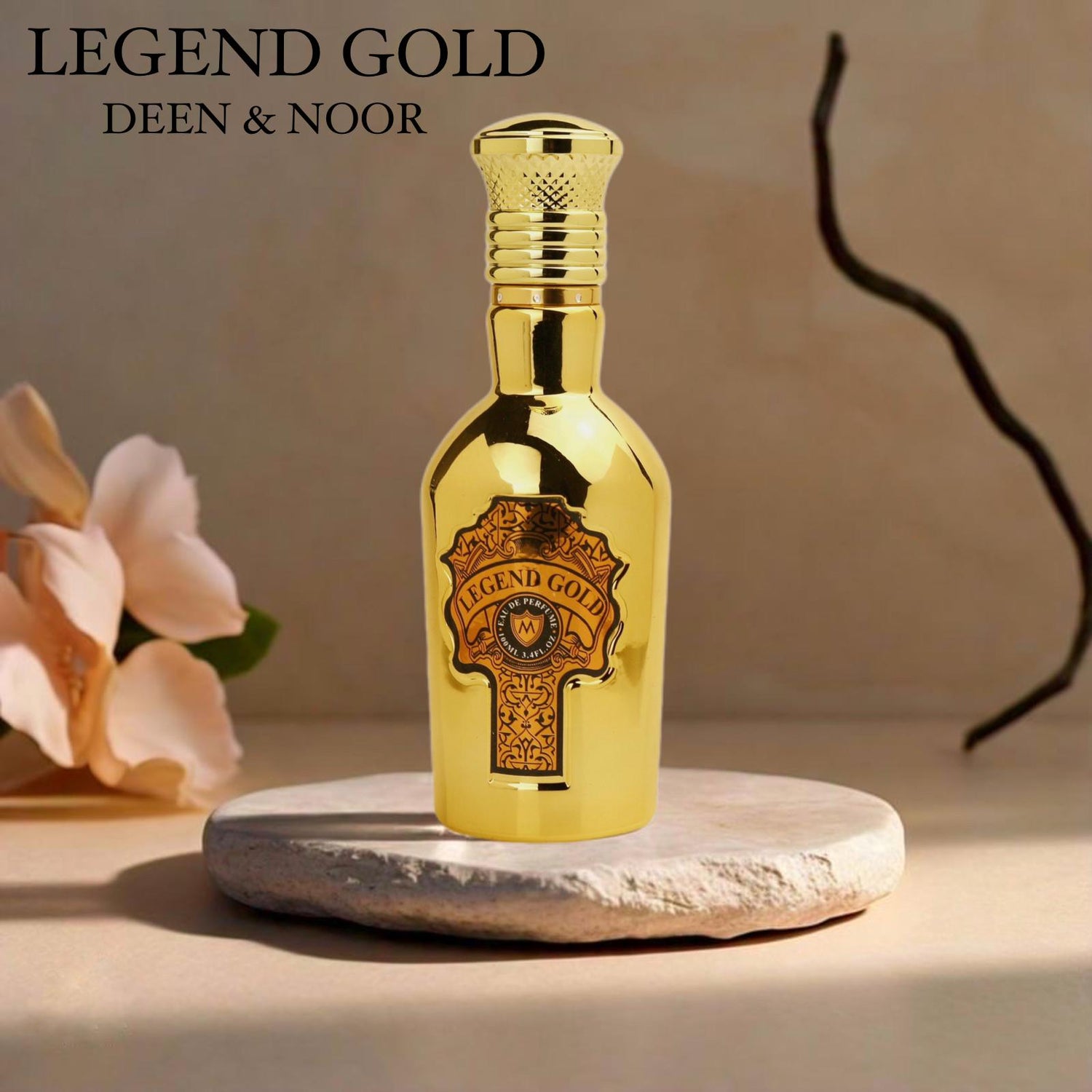 "Legend Gold" es una fragancia exquisita que se abre con notas frescas y vigorizantes de bergamota y hojas de violeta, para dar paso a un corazón de sándalo, jazmín y magnolia. Culmina con una base rica y persistente de jazmín y oud ahumado, que crea un aura de sofisticación y encanto.