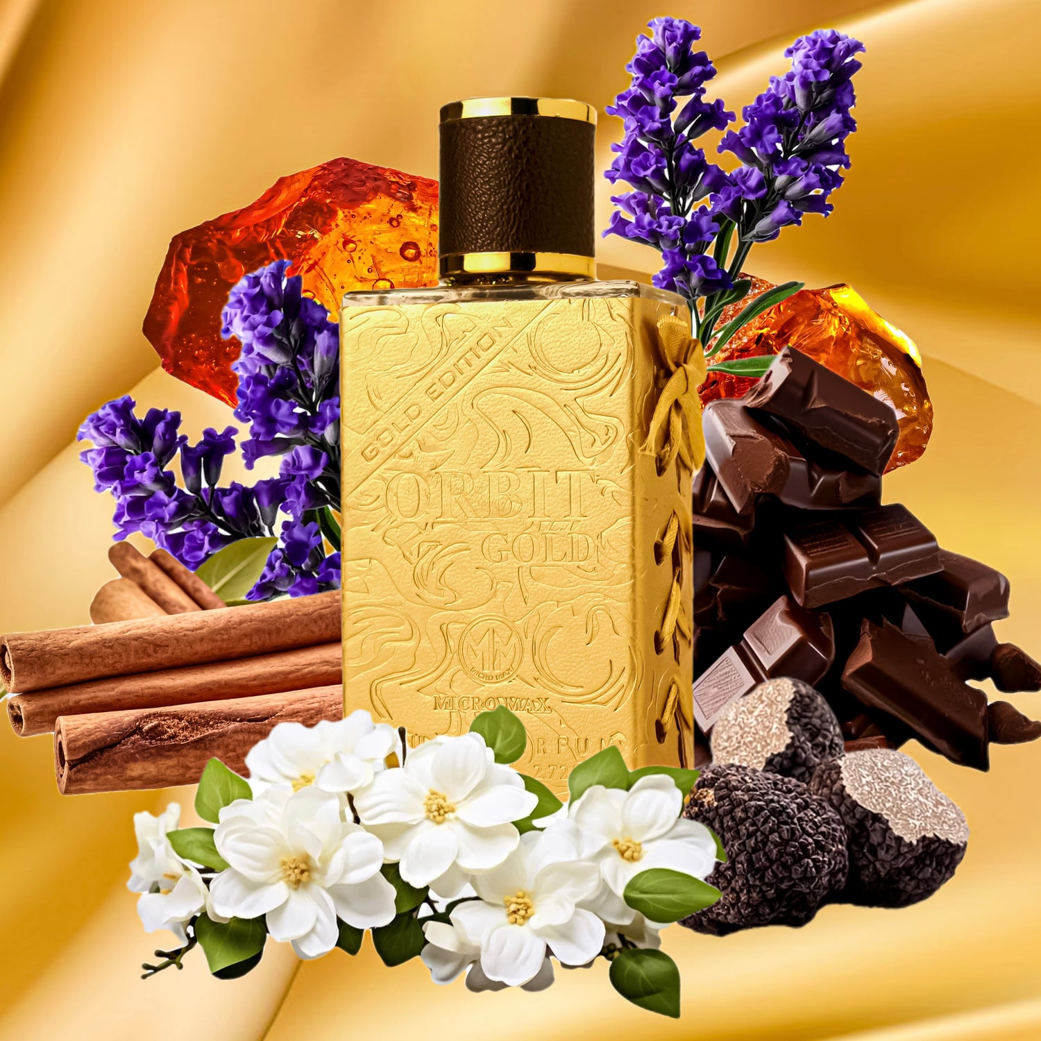 Orbit Gold está formulado meticulosamente con ingredientes de primera calidad y ofrece una capacidad de 80 ml para disfrutar. Esta fragancia floral está diseñada para el segmento de lujo y garantiza una experiencia olfativa sofisticada y duradera. Fabricada en los Emiratos Árabes Unidos, representa el epítome de la calidad y la elegancia en perfumería, con su exquisita combinación de notas que incluyen pachulí, sándalo, chocolate negro, incienso y ámbar en la base.